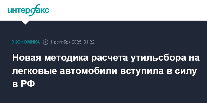 Москва. 1 декабря. INTERFAX.RU - Новая методика расчета утильсбора на легковые автомобили в РФ, которая учитывает в том числе мощность двигателя импортируемых машин, вступила в силу с 1 декабря.