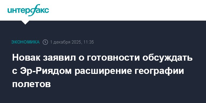 Новак заявил о готовности обсуждать с Эр-Риядом расширение географии полетов