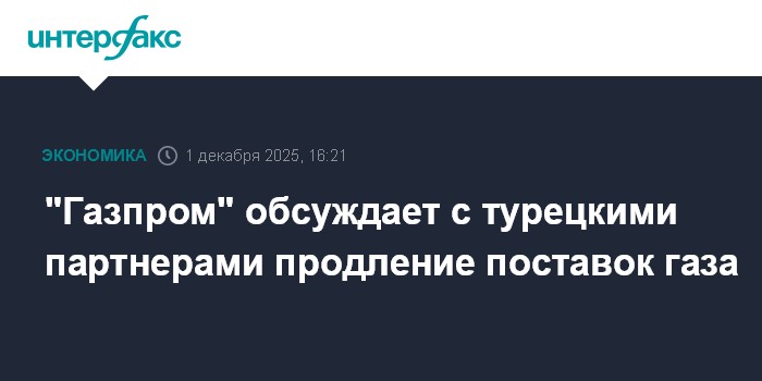 "Газпром" обсуждает с турецкими партнерами продление поставок газа
