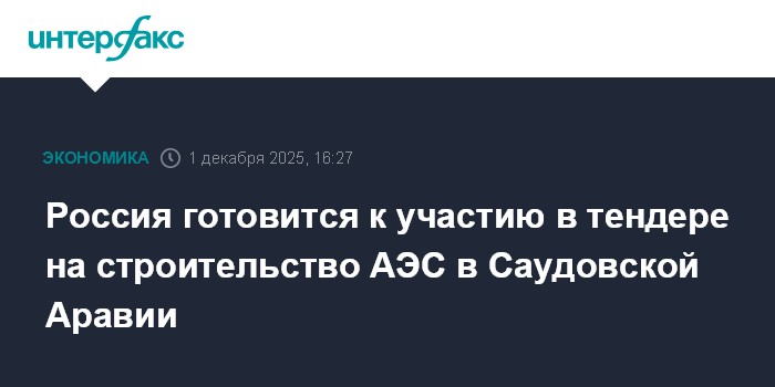 Москва. 1 декабря. INTERFAX.RU - Россия готовится участвовать в тендере на строительство АЭС в Саудовской Аравии, его условия и страны-участники уже известны, рассказал журналистам вице-премьер Александр Новак.