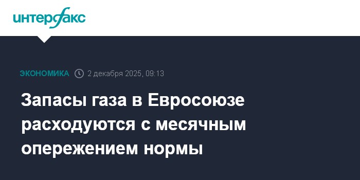 Москва. 2 декабря. INTERFAX.RU - Европейские газовые операторы отобрали из подземных хранилищ в ноябре 2025 года 8,2 млрд куб. м газа, свидетельствуют данные Gas Infrastructure Europe. Годом ранее, когда было примерно на полградуса холоднее, это показатель составлял 10,8 млрд куб. м.