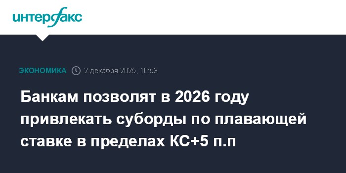 Банкам позволят в 2026 году привлекать суборды по плавающей ставке в пределах КС+5 п.п
