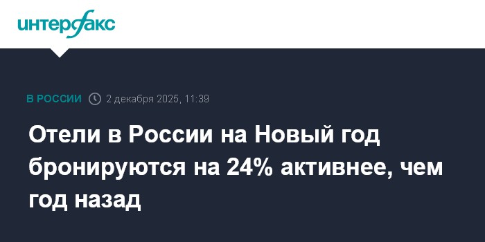 "Согласно статистике бронирований отелей на период с 31 декабря по 10 января 2026 года, совершенных с начала 2025 года через онлайн-каналы и средства размещения, работающие через платформу Travelline, прирост объемов по сравнению с прошлым годом составляет 24%", - говорится в сообщении.