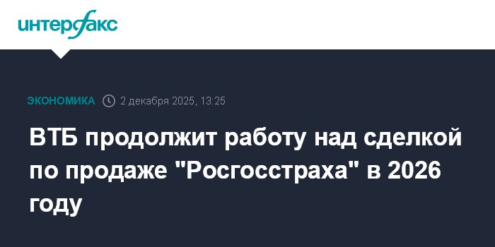 ВТБ продолжит работу над сделкой по продаже "Росгосстраха" в 2026 году