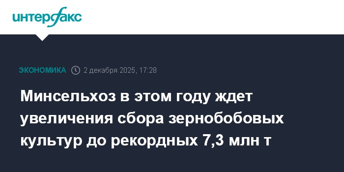 Москва. 2 декабря. INTERFAX.RU - Сбор зернобобовых культур в РФ в этом году составит 7,3 млн тонн, что на треть больше, чем в прошлом году, и станет абсолютным рекордом.