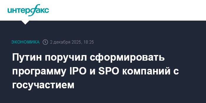 Путин поручил сформировать программу IPO и SPO компаний с госучастием