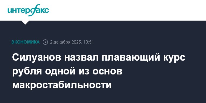 Москва. 2 декабря. INTERFAX.RU - Плавающий курс рубля - это одно из достижений российской экономической политики современного периода и основа макроэкономической стабильности, отказ от него был бы ошибкой, считает глава Минфина Антон Силуанов.