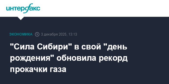 "Сила Сибири" в свой "день рождения" обновила рекорд прокачки газа
