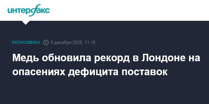 Москва. 5 декабря. INTERFAX.RU - Цены на медь вновь обновили исторический максимум на Лондонской бирже металлов (LME) на фоне опасений дефицита этого металла.