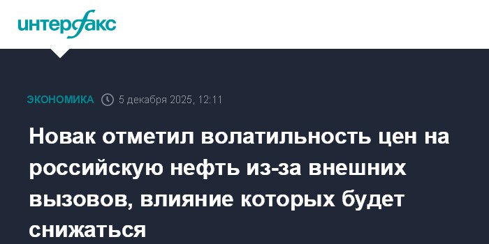 "Сейчас волатильность из-за внешних вызовов, которая будет успокаиваться. Посмотрим в целом, как по году (цены на российскую нефть - ИФ) будут соответствовать тем прогнозам, которые были приняты", - заявил журналистам Новак в кулуарах премии "Импульс".