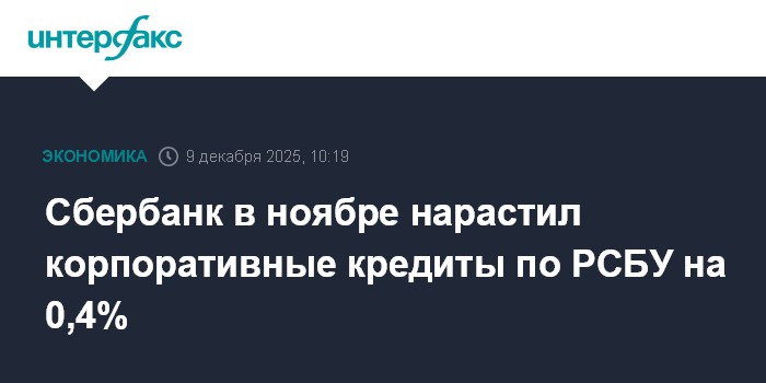 Сбербанк в ноябре нарастил корпоративные кредиты по РСБУ на 0,4%