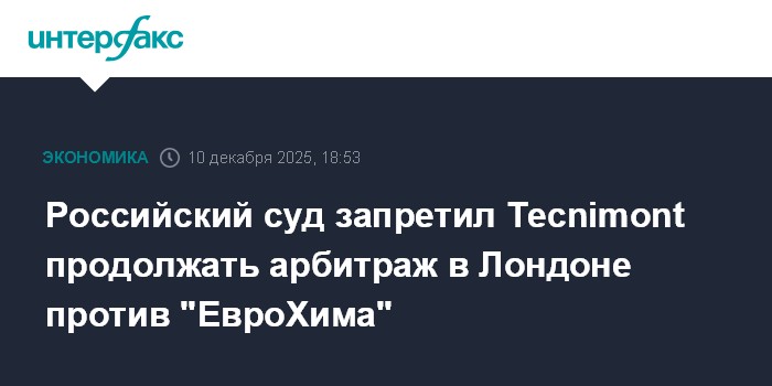 Российский суд запретил Tecnimont продолжать арбитраж в Лондоне против "ЕвроХима"