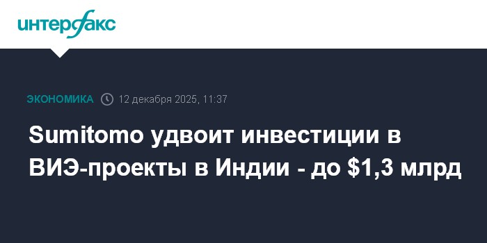 Москва. 12 декабря. INTERFAX.RU - Sumitomo Corp. планирует инвестировать 200 млрд иен ($1,3 млрд) в несколько проектов в сфере возобновляемой энергетики (ВИЭ) в Индии, сообщает газета Nikkei.