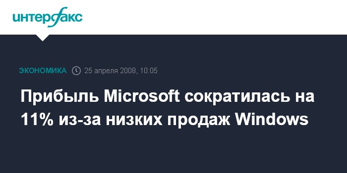 Нью-Йорк. 25 апреля. INTERFAX.RU – Прибыль Microsoft Corp. сократилась в третьем финансовом квартале на 11% из-за низких продаж операционной системы Windows, что вызвало падение акций компании на 4,4%, сообщило агентство Bloomberg.