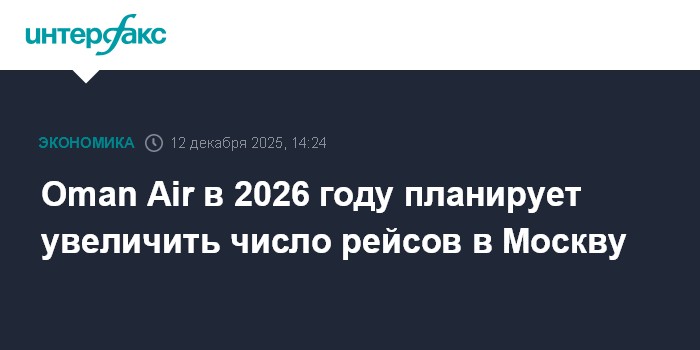 Москва. 12 декабря. INTERFAX.RU - Авиакомпания Oman Air в 2026 году планирует увеличить частоту полетов в Москву, а также запустить рейсы в Екатеринбург, Санкт-Петербург и Сочи, сообщила Росавиация.