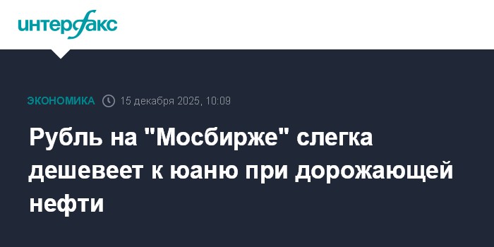 Москва. 15 декабря. INTERFAX.RU - На открытии торгов понедельника на "Московской бирже" рубль слегка дешевеет к юаню, несмотря на рост цен на нефть.