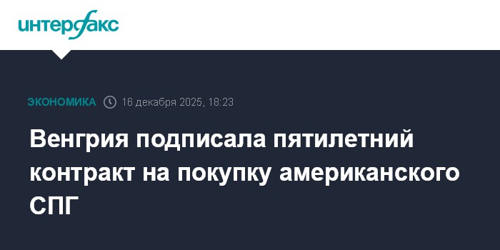 Москва. 16 декабря. INTERFAX.RU - Венгрия подписала пятилетний контракт на покупку американского сжиженного природного газа (СПГ) в объеме 0,4 млрд кубометров в год, сообщил глава МИД страны Петер Сийярто в соцсети.