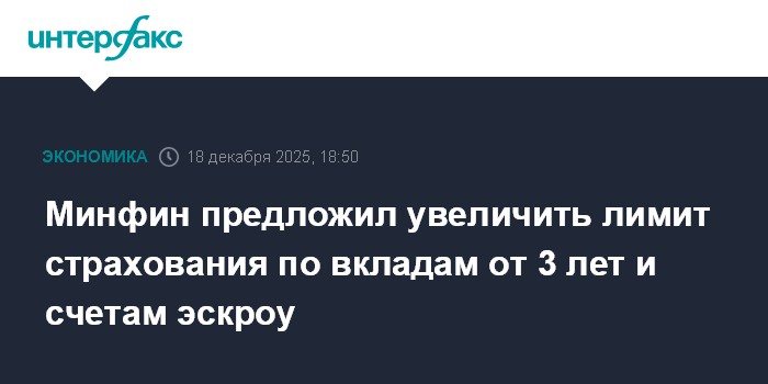 Минфин предложил увеличить лимит страхования по вкладам от 3 лет и счетам эскроу