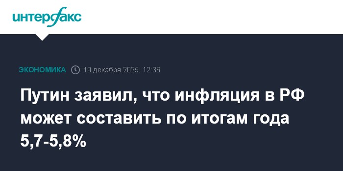 Путин заявил, что инфляция в РФ может составить по итогам года 5,7-5,8%
