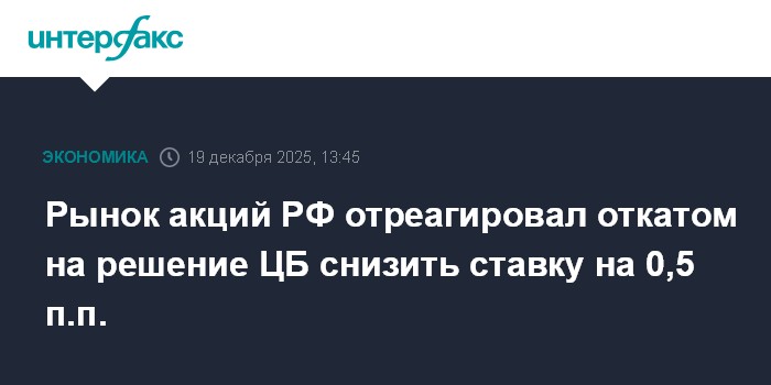 Рынок акций РФ отреагировал откатом на решение ЦБ снизить ставку на 0,5 п.п.