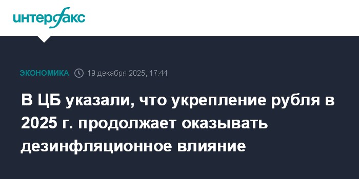 В ЦБ указали, что укрепление рубля в 2025 г. продолжает оказывать дезинфляционное влияние