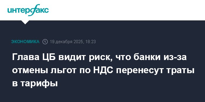 Глава ЦБ видит риск, что банки из-за отмены льгот по НДС перенесут траты в тарифы