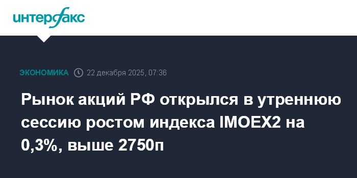 Рынок акций РФ открылся в утреннюю сессию ростом индекса IMOEX2 на 0,3%, выше 2750п