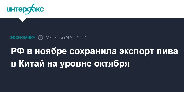 РФ в ноябре сохранила экспорт пива в Китай на уровне октября