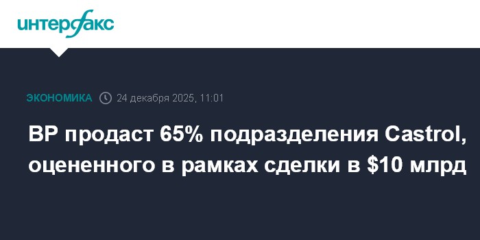 Стороны рассчитывают закрыть сделку к концу 2026 года. BP сможет продать оставшуюся долю в Castrol после двухлетнего локап-периода.