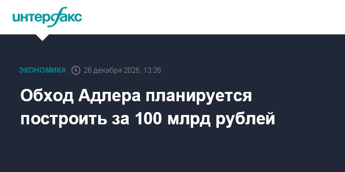Москва. 26 декабря. INTERFAX.RU - Стоимость строительства обхода Адлера, определенная в размере 100 млрд рублей, является окончательной, заявил вице-премьер РФ Марат Хуснуллин.