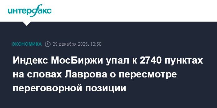 Индекс МосБиржи упал к 2740 пунктах на словах Лаврова о пересмотре переговорной позиции