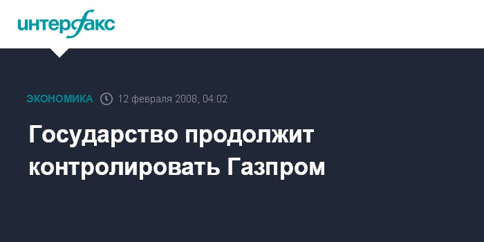 Москва. 12 февраля. INTERFAX.RU - Государство продолжит контролировать ситуацию в "Газпроме", заявил президент России Владимир Путин.