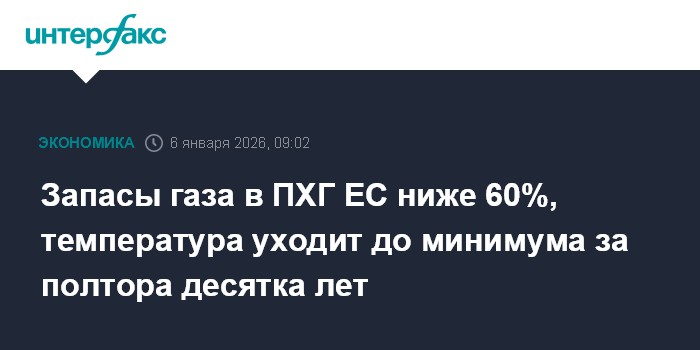Запасы газа в ПХГ ЕС ниже 60%, температура уходит до минимума за полтора десятка лет
