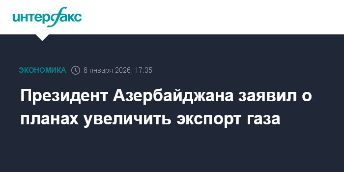 Москва. 6 января. INTERFAX.RU - Азербайджан намерен нарастить экспорт газа за счет развития возобновляемых источников энергии (ВИЭ) и газодобычи, заявил президент страны Ильхам Алиев.