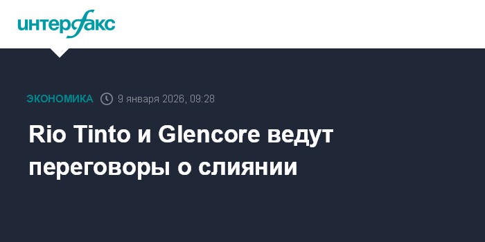 Москва. 9 января. INTERFAX.RU - Rio Tinto и Glencore ведут переговоры о слиянии, в результате которого может быть создана крупнейшая горнодобывающая компания мира с капитализацией более $200 млрд.