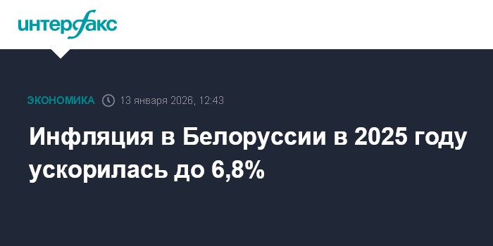 Москва. 13 января. INTERFAX.RU - Инфляция в Белоруссии в 2025 году выросла до 6,8% с 5,2% в 2024 году, сообщил Национальный статистический комитет страны.