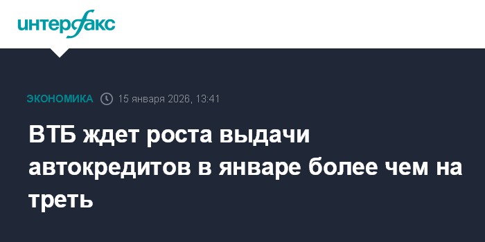 Москва. 15 января. INTERFAX.RU - Объем выдачи автокредитов в РФ в январе 2026 года может составить 116 млрд руб., превысив результат января 2025 года на 36%, прогнозируют в ВТБ.