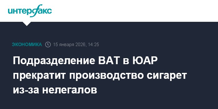 Москва. 15 января. INTERFAX.RU - Подразделение British American Tobacco Plc (ВАТ) в ЮАР прекращает выпуск сигарет в стране, поскольку активный рынок нелегальных табачных изделий делает такую работу нерентабельной, сообщило подразделение.