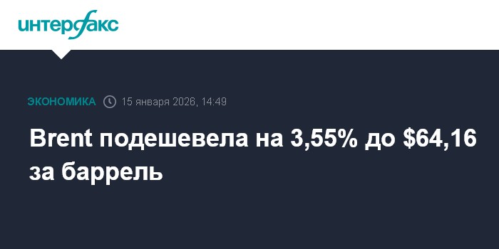 Февральские фьючерсы на WTI к этому времени дешевели на бирже NYMEX на $2,28 (3,68%), до $59,74 за баррель.