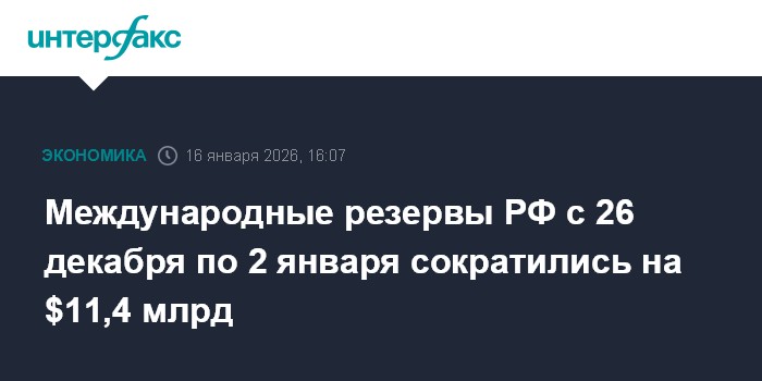 Международные резервы РФ с 26 декабря по 2 января сократились на $11,4 млрд