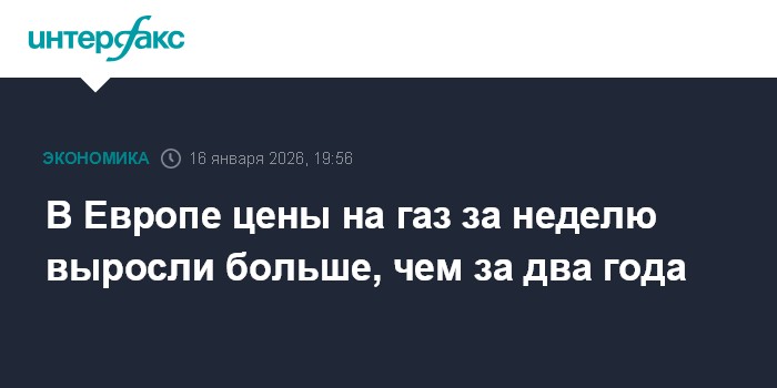 Москва. 16 января. INTERFAX.RU - Цена фьючерса на природный газ на ближайший месяц на нидерландской площадке TTF в пятницу обновила максимум с июня 2025 года на ожиданиях похолодания в Европе в конце января.