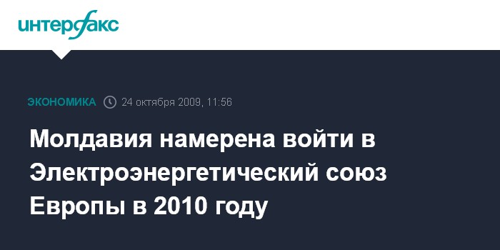 Кишинев. 24 октября. INTERFAX.RU - Молдавия рассчитывает в 2010 году присоединиться к Электроэнергетическому союзу стран Европы, заявил премьер-министр республики Владимир Филат. "Надеемся, что в следующем году станем полноправным членом европейского энергокомплекса", - сказал он журналистам. Пока Молдавия имеет статус наблюдателя в этом объединении.