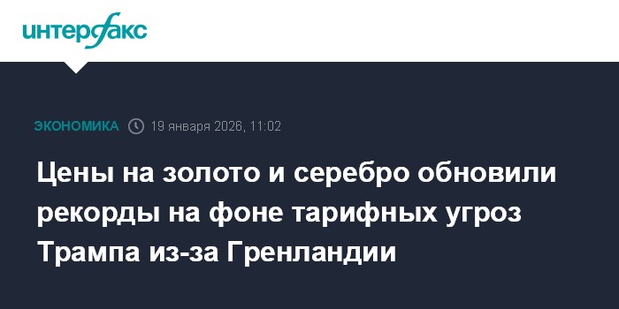 Москва. 19 января. INTERFAX.RU - Цены на золото и серебро обновили рекорды в понедельник на фоне увеличения спроса на активы "тихой гавани" в связи с ситуацией вокруг Гренландии.