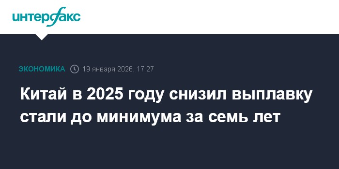 Китай в 2025 году снизил выплавку стали до минимума за семь лет