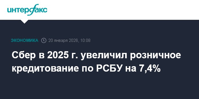 Сбер в 2025 г. увеличил розничное кредитование по РСБУ на 7,4%