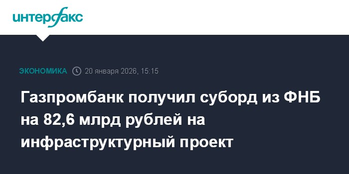 Газпромбанк получил суборд из ФНБ на 82,6 млрд рублей на инфраструктурный проект