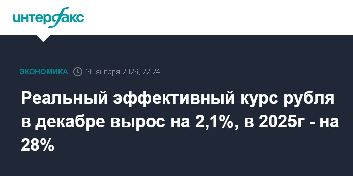 В 2025 году реальный эффективный курс рубля вырос на 28%.