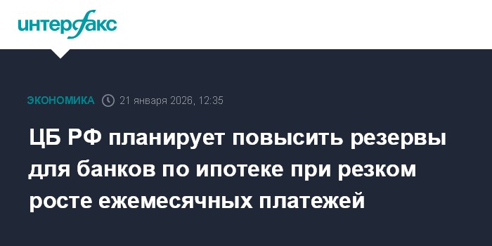 ЦБ РФ планирует повысить резервы для банков по ипотеке при резком росте ежемесячных платежей