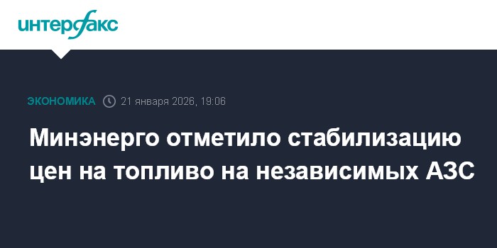 Москва. 21 января. INTERFAX.RU - Министерство энергетики отмечает стабилизацию цен на топливо на независимых автозаправках, говорится в комментарии министерства, которое ведет работу по обеспечению стабильных поставок моторного топлива потребителям.