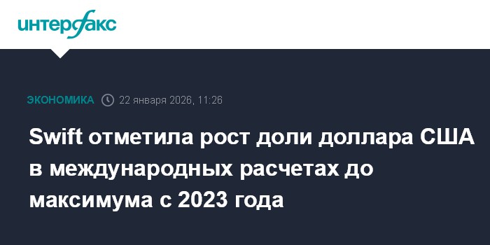 Swift отметила рост доли доллара США в международных расчетах до максимума с 2023 года